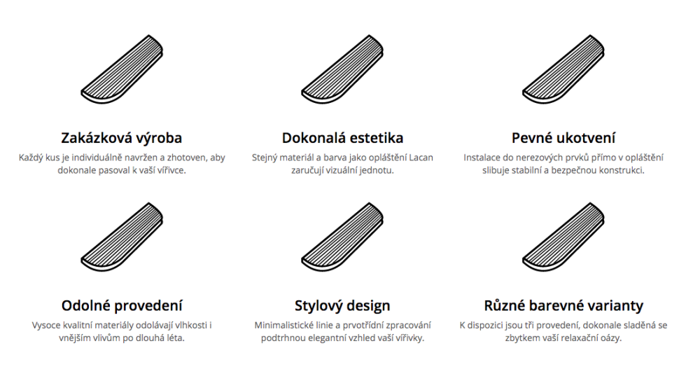 Dopřejte si opravdový luxus a pohodlí díky naší jedinečné Lacan SmartBar, která je dokonale sladěná s každou vířivou vanou vybavenou opláštěním Lacan. Tato robustní polička, vyráběná na zakázku, se pevně kotví do nerezových prvků v opláštění a zaručuje stabilitu i při plném zatížení.