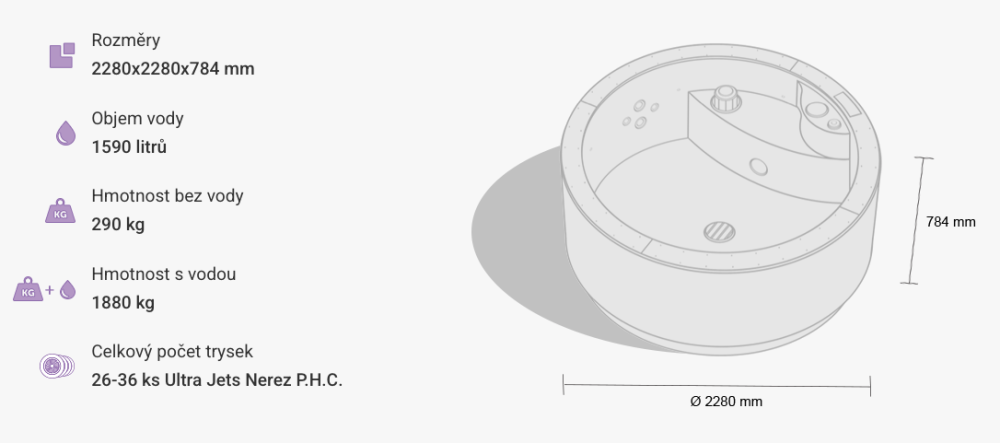 Využili jsme svých zkušeností a také nauky o energiích k tomu, abychom propojili vodu s kovem a vytvořili tak úžasný prvek, který pokud je správně aktivován, dokáže přinést zázračné štěstí a masáž ještě jako bonus. Vytvořili jsme pro Vás vířivou vanu z nerezové oceli, která sestává z nejodolnějšího materiálu a přitom je zcela ekologická k přírodě.