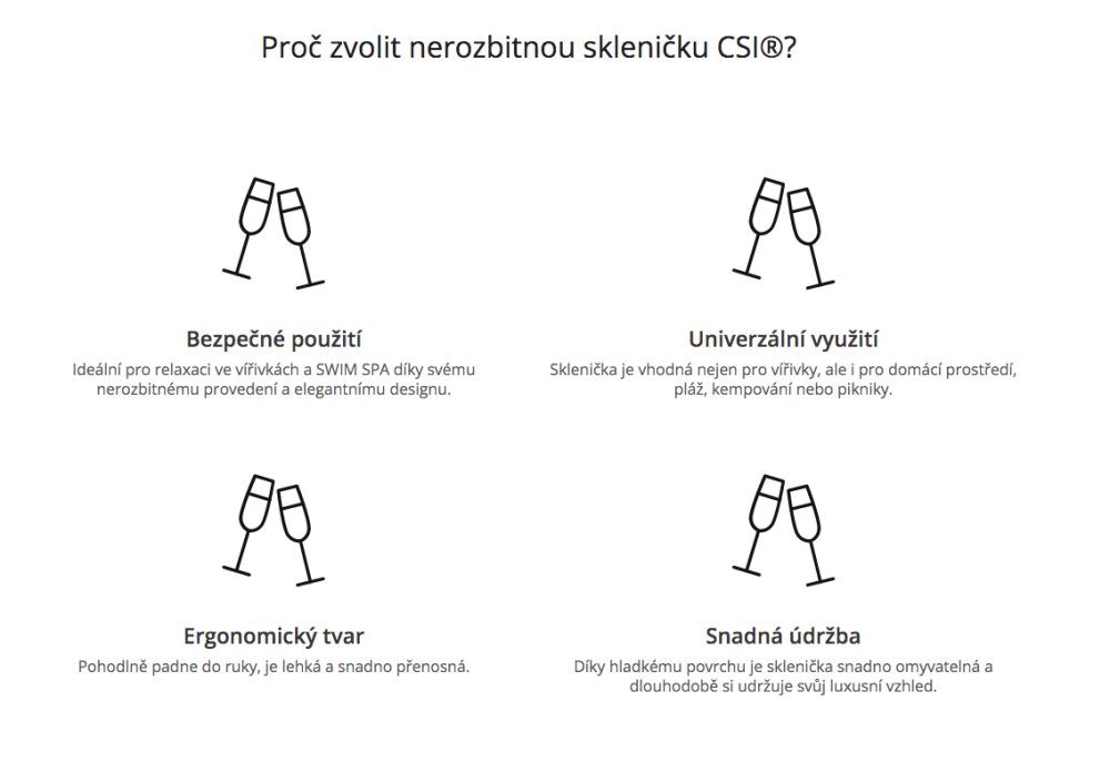 Představujeme originální nerozbitnou skleničku Canadian SPA®, navrženou jako luxusní doplněk přímo do vířivých van a SWIM SPA. Tato sklenička, vyrobená z prvotřídního polykarbonátu, kombinuje eleganci a mimořádnou odolnost, díky čemuž je ideální pro bezpečné užívání ve vodním prostředí. Je však také skvělou volbou pro domácí použití, zahradu, pláž nebo výlety. Více